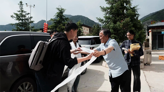 调研组一行人刚下车,公司董事长班玛道杰为我们献上了洁白的哈达以及青稞酒。