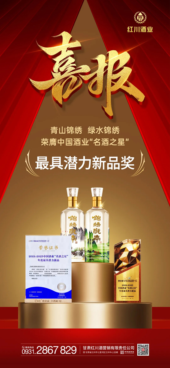 2月21日,2024-2025中国酒业名酒之星年度最具潜力新品发布盛典在广州盛大举办,在上百款产品的激烈角逐中,红川酒业旗下青山锦绣、绿水锦绣脱颖而出,荣膺中国酒业“名酒之星”最具潜力新品奖。这一殊荣不仅是对两款新品的高度认可,也是对红川酒业坚守品质、守正创新的有力肯定,更是对陇酒品牌全国化进程的积极助推。