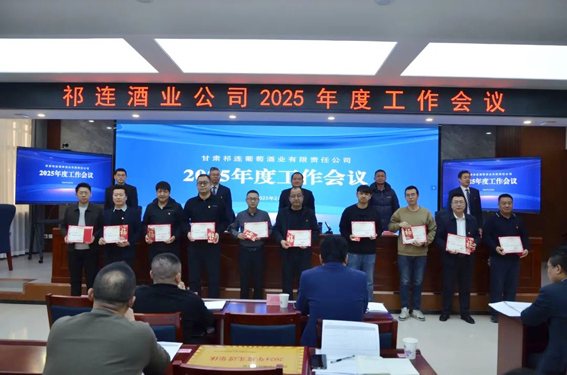2月22日下午,甘肃祁连葡萄酒业有限责任公司2025年度工作会议圆满完成各项议程,在兰州闭幕。公司党委及经营班子,下属各党群组织、单位、部门负责人,受表彰的先进个人,以及在兰的部门职工共50人参加。会议由副总经理兼营销总监李作梓主持,并邀请了白龙江林业保护中心产业处副处长孙平列席。
