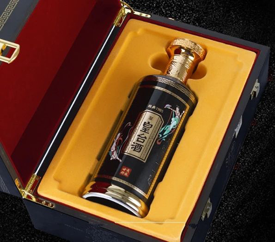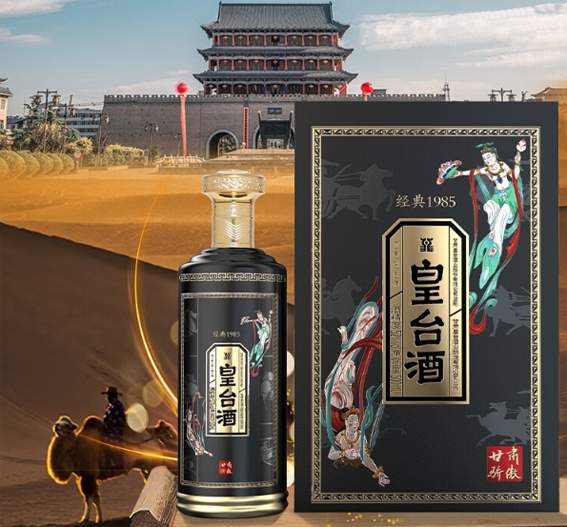 经典皇台·1985——酒质优秀,口感醇厚,回味甘甜。瓶体采用黑色作为主色调,气派厚重。外盒以敦煌飞天为背景,饰以汉代铜马车、汉代骑射图,是公司的高端标杆形象产品。