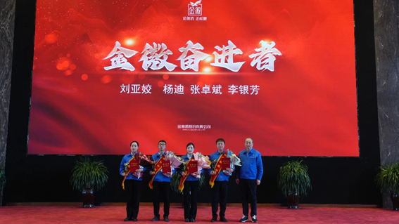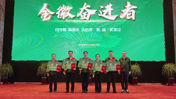 我们甘肃省甘南大区迭部县的业务负责人,刚到公司的时候是物流司机,拉酒送货,工作干的很好。后来申请干销售,去了甘南大区的迭部县,这里是甘肃高寒阴湿地区,海拔高,工作条件很差。但我们的业务人员在这里一干就是 10年,在迭部扎下了根,在海拔 3700 米的高寒缺氧地方,年年业绩超额完成,连续三年被评为优秀员工,成为金徽酒历史上的第一位奋进者。像他这样的人还很多,这就是金徽酒的好机制。