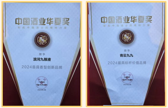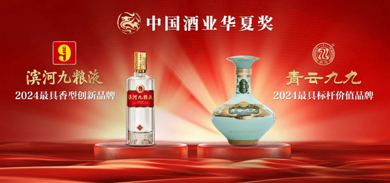 滨河集团产品荣获“滨河九粮液-2024最具香型创新品牌”、青云九九-“2024最具标杆价值品牌”两大表彰。