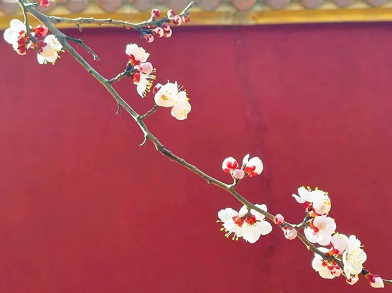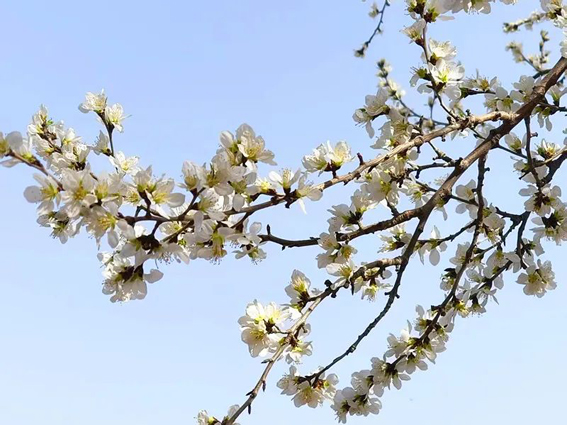 皇台酒业厂区内外的迎春花、连翘、巴丹杏是最先开花的,一串串鹅黄的花,白色的花,又碎小,又清新,密集的排列在枝桠上,看见,心头就有喜悦在荡漾。