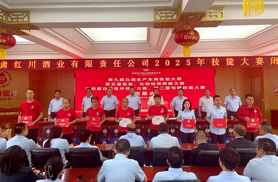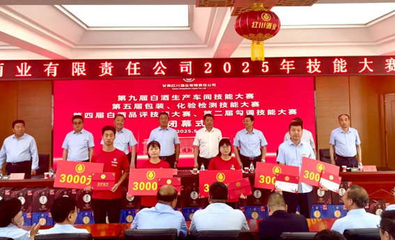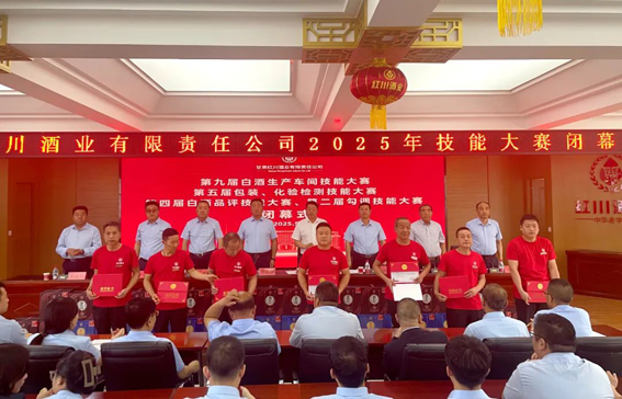 2025年5月24日上午,红川酒业第九届白酒生产、第五届包装与化验检测、第四届白酒品评、第二届勾调技能大赛闭幕式暨颁奖典礼隆重举行。