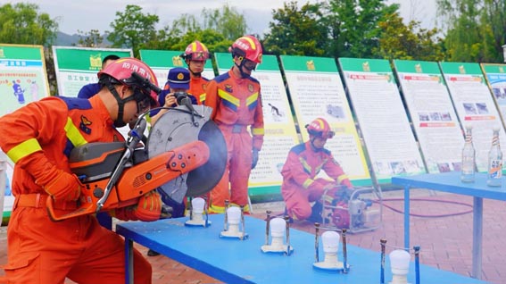 活动现场,县消防大队与金徽酒消防队联合进行了专业救援技能展示,直观地向与会人员演示了应急处置的关键技术和流程。