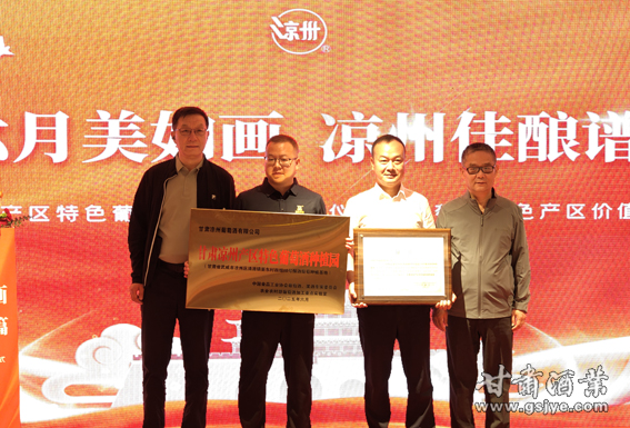 段治国主任在致辞时表示,一直以来,皇台酒业享有“南有茅台,北有皇台”的赞誉,这不仅是皇台酒业的荣耀,更是陇酒产业的骄傲。目前,“凉州”品牌葡萄酒已形成了丰富的产品构架,涵盖了高、中、低端消费群体,深受消费者喜爱。此次被授予“甘肃皇台酒业凉州产区特色葡萄酒种植园”,既是对皇台酒葡萄酒种植领域所取得成绩的肯定,又是对河西走廊葡萄酒产业标准化、特色化、品牌化发展的示范和引领。