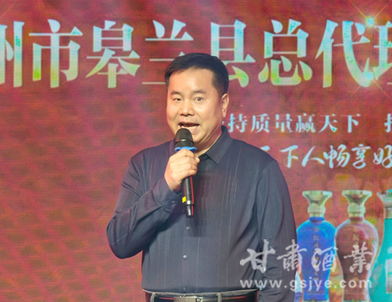 陇原明珠酒创始人、公司董事长傅承康发表讲话。他回顾了企业从榆中县房地产转型进入白酒行业的初心,并坦言当前行业处于“结构性繁荣与挤压式增长并存”的阶段,但越是困难时期,越要夯实基础、贴近消费者。“皋兰是兰州北大门,人口密集、宴席活跃,是检验产品动销能力的重要阵地。直营店不仅是销售窗口,更是品鉴中心、文化驿站和客户联络站。”傅承康表示,公司将持续优化产品结构、强化渠道支持,并鼓励一线团队“在逆境中坚守,在深耕中成长”