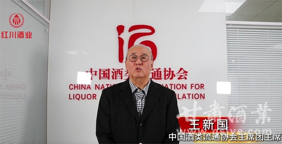 中国酒类流通协会主席团主席王新国发来视频祝贺红川酒业