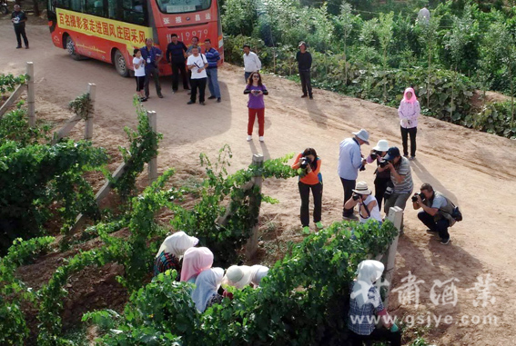 中国 河西走廊第八届有机葡萄美酒节暨国风庄园核心客户张掖旅游文化活动于7月20 至8月30如期举办,8月18日,百名摄影家走进河西走廊葡萄酒产区采风团张掖分队首先来到国风酒厂,在企业领导的精心安排下,采风团现场进行了采风创作活动,摄影家们采访酿酒车间并与职工和来自兰州的百余名经销商互动交流,在板桥酿酒葡萄种植基地,田间劳作的妇女以及围观的群众变成摄影家的拍摄模特,大片的葡萄园变成天然的摄影棚。