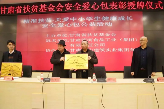 甘肃扶贫基金会为滨河集团颁发授牌