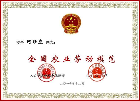 目前,农业部、人社部联合举行“全国农业劳动模范”“全国农业先进工作者”评选表彰活动,莫高葡萄种植公司经理何旺庄荣获“全国农业劳动模范”称号。