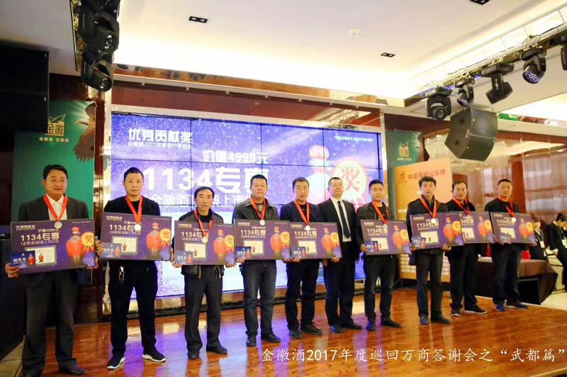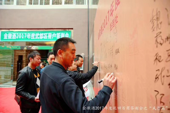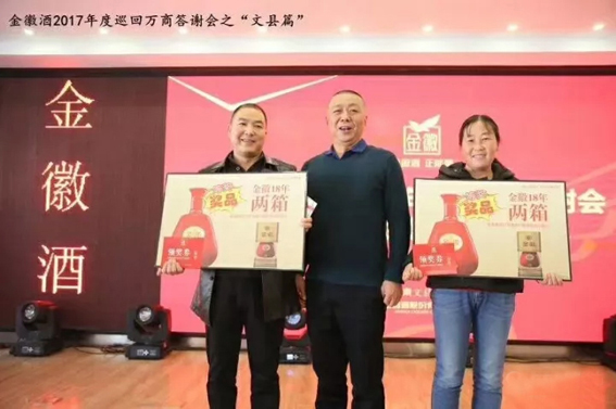 新思想照亮新时代,新战略指引新实践!这次万商答谢会主要采取品牌宣传和产品推介,文艺演出和抽奖互动,大型答谢会和个别座谈会相结合的形式开展。公司销售人员、经销商代表、客户代表和社会各界人士踊跃发言、探讨交流,为金徽的发展献计献策,现场气氛十分热烈。