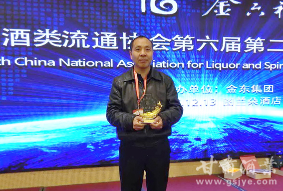 甘肃酒类商品管理局副调研员沈明程代表省酒业协会登台领奖