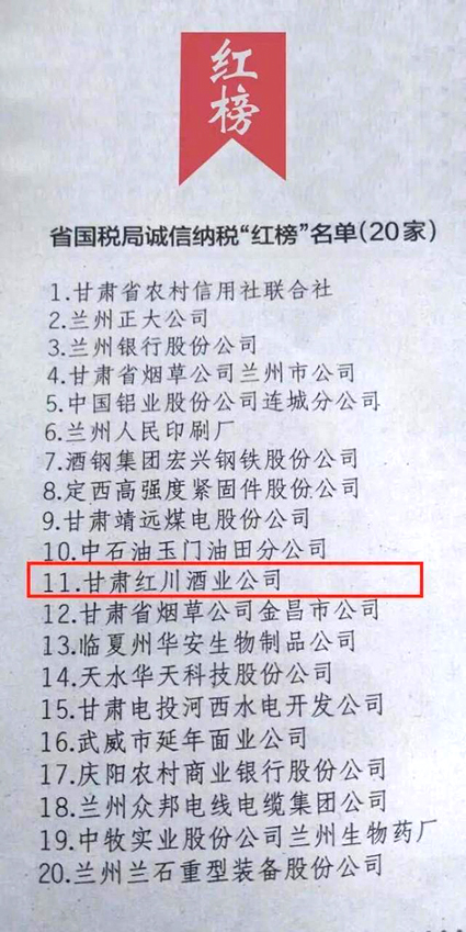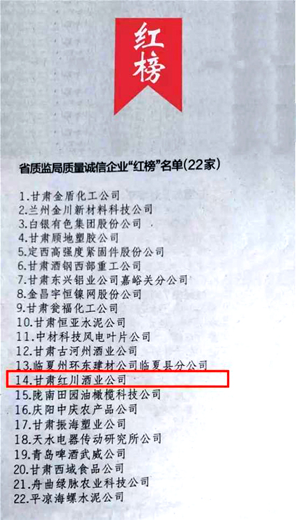 ――红川酒业荣登“甘肃省诚信单位”双“红榜”