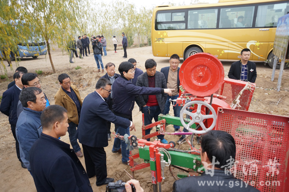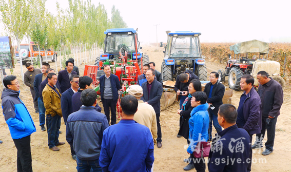 20日上午,参加培训会的全体学员在民勤林业站站长许兴文的带领下,在甘肃三十八度酒庄基地、天驭酒庄、苏武山葡萄庄园、夏博岚酒庄参观考察了酿酒葡萄种植基地和机械化、标准化厂型酿酒葡萄架形改造基地。专家与基层技术人员现场进行交流,在葡萄架下,郝燕研究员根据不同的枝型,示范演示搭架、剪枝规则,解答大家的咨询。在夏博岚酒庄东坝林业工作区沙嘴墩实验示范基地,王振平博士介绍机械化设备的性能及用途并解答相关问题。