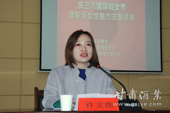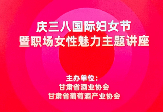 甘肃酒业网讯:(文/图:魏琳) 如诗如画三月天,巾帼红颜显风流!为庆祝三八国际妇女节,甘肃省酒业协会、甘肃省葡萄酒产业协会于3月5日下午3时在甘肃省商务厅多功能厅举办《职场女性魅力之源》专题讲座,致敬甘肃酒界最美的女企业家们。