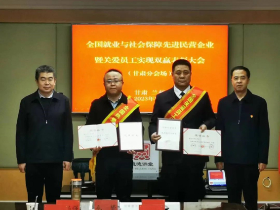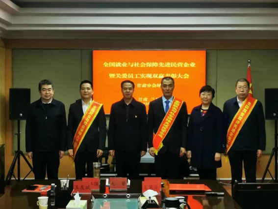 甘肃鸿丰电石有限责任公司、甘肃红川酒业有限责任公司荣获“全国就业与社会保障先进民营企业”称号;腾达西北铁合金有限责任公司工会委员会荣获“全国双爱双评先进企业工会”称号;甘肃万绿源生态农业有限公司董事长朱存成同志荣获“全国关爱员工优秀民营企业家”称号;兰州和盛堂制药股份有限公司营销中心副总经理苏桦同志荣获“全国热爱企业优秀员工”称号。