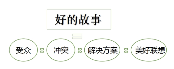 好的品牌故事=受众x冲突x解决方案x美好联想。