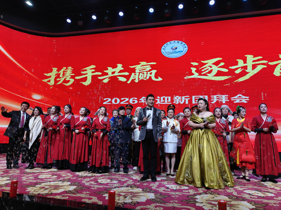 岁月更迭,华章日新。12月26日,由兰州市金港糖酒商会主办,甘肃滨河集团、甘肃义顺集团协办的2026迎新团拜会在甘肃万寿宫大酒店隆重举行。本次团拜会以“携手共赢 逐步前行”为主题,旨在增强商会凝聚力、鼓舞会员士气、树立商会良好形象、沟通与社会各界的关系。来自社会各界嘉宾、商会会员、金港糖酒市场商户代表、各友好(商)协会代表近300余人出席团拜会,大家欢聚一堂,畅叙友谊,共话过往成就,共绘发展蓝图,共品滨河九粮佳酿,传递对美好生活的向往。