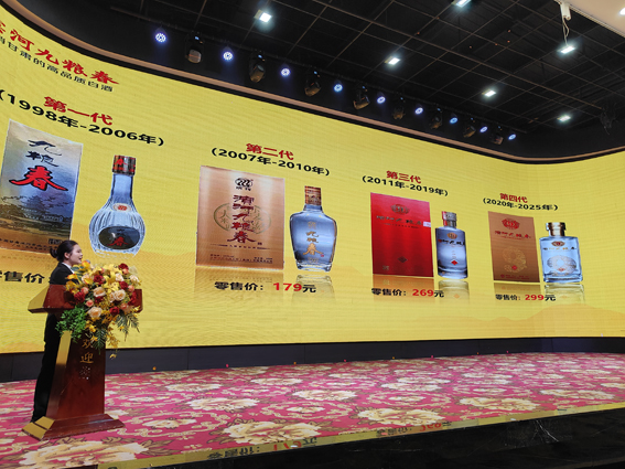 滨河九粮春品牌讲师焦文秀为与会嘉宾分享了滨河九粮春品牌的进阶之路。并从三个方面讲述了滨河九粮春升级的理由:一是顺应消费分化,持续升级战略大单品;二是顺应大众酒扩容,完善产品敌阵;三是深化品类战略,强化品牌价值。第五代滨河九粮春在品牌视觉上实现全面焕新。设计大师万宇打造出极具辨识度的超级符号“9”,中国著名书法家侯开嘉亲笔题写“滨河九粮春”品牌字体,共同构建统一的九粮家族视觉体系。包装延续“九粮基因”,瓶底雕饰“9”瓣花形,瓶盖以九道弧形切面旋叠成圆,细节中强化品牌符号。从第一代到今天的第五代,滨河九粮春始终以“品质为本、价格亲民”为理念。作为陇酒领军品牌,在传承中创新,在坚守中超越,让九粮之香一脉相承,让陇酒之韵历久弥新。