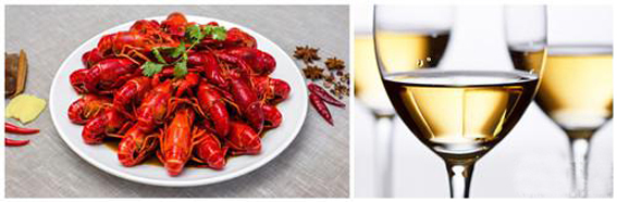 2. 十三香小龙虾搭配维欧尼(Viognier)干白葡萄酒或琼瑶浆(Gewurztraminer)甜白葡萄酒