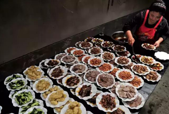 陇南乡村的酒席丰富多彩,更多的是些感动的场面,身处酒席当中,我常被纯朴热情的民风所感染。在家乡,只要是谁家遇到婚丧嫁娶红白喜事,不论农活多忙,路有多远,还是刮风下雨,只要主家请了,你就得千方百计如约去参加主人举办的酒席。只要是一家办酒席,整个村子几乎都行动起来,桌子板凳搬来了,瓢碗盆盘借来了,为了一次乡村酒席,家家户户都是有物出物,有人出人,男人们来了帮着搭棚子,支桌子;女人们来了切菜剪丸子,忙得不亦乐乎,她们叽叽喳喳、热热闹闹,偶尔传来爽朗的笑声,倒成了乡村酒席上的又一景。到酒席上帮忙的庄户人,以服务客人为先,客人都吃完了,她们才能抽空吃点东西。到了晚上,主人家的地方不够住,亲戚们通常被安顿在邻居家住下,乡村人就这样,把一家的事当大家的事来办。