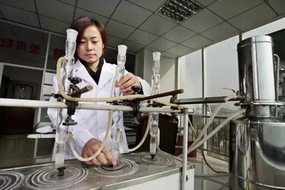 “白酒酿出后,在化验室内,工作人员还要对酿好的白酒进行化验,确保酒的质量。”