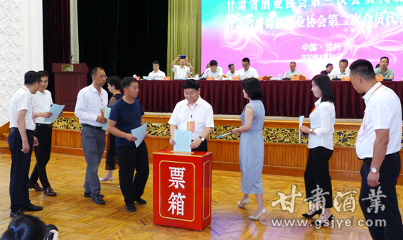 大会听取并审议通过了由甘肃省酒类商品管理局局长、甘肃省酒业协会第二届理事会代理会长、甘肃省葡萄酒产业协会会长陈浦代表上届两个协会理事会所作的工作报告,审议并投票表决通过两个协会《财务收支情况报告》《章程》和《财务管理办法》及《会费管理办法》《选举办法》。选举产生了甘肃省酒业协会第三届理事会、监事会成员,甘肃省葡萄酒产业协会第二届理事会、监事会成员;选举产生了两个协会的会长、副会长、秘书长和常务理事。张秉庆当选第三届甘肃省酒业协会会长,韩舜愈当选第二届甘肃省葡萄酒产业协会会长,同时进行了授牌仪式。