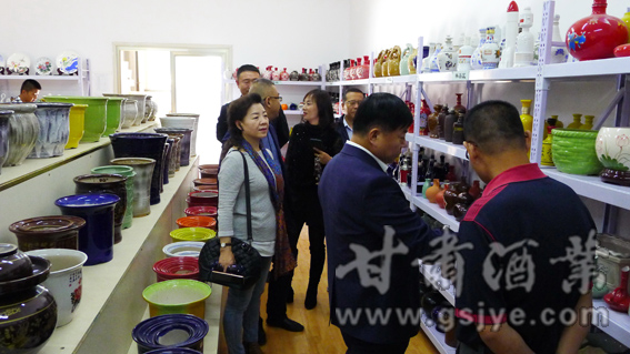 甘肃酒业网武威讯:(文/图 白杨 庆云) 9月17日下午,借河西走廊第十届有机葡萄美酒节举行之际,甘肃省酒业协会会长张秉庆、常务副会长党金林、副会长兼秘书长李云等一行6人,在普康酒业进行考察调研。在普康集团董事长冯淑刚、酒业公司总经理徐国秀、兰州销售公司总经理蔡忠顺陪同下,先后参观了厂区及酿造车间、地下酒窖以及陶瓷分厂、田园综合体。