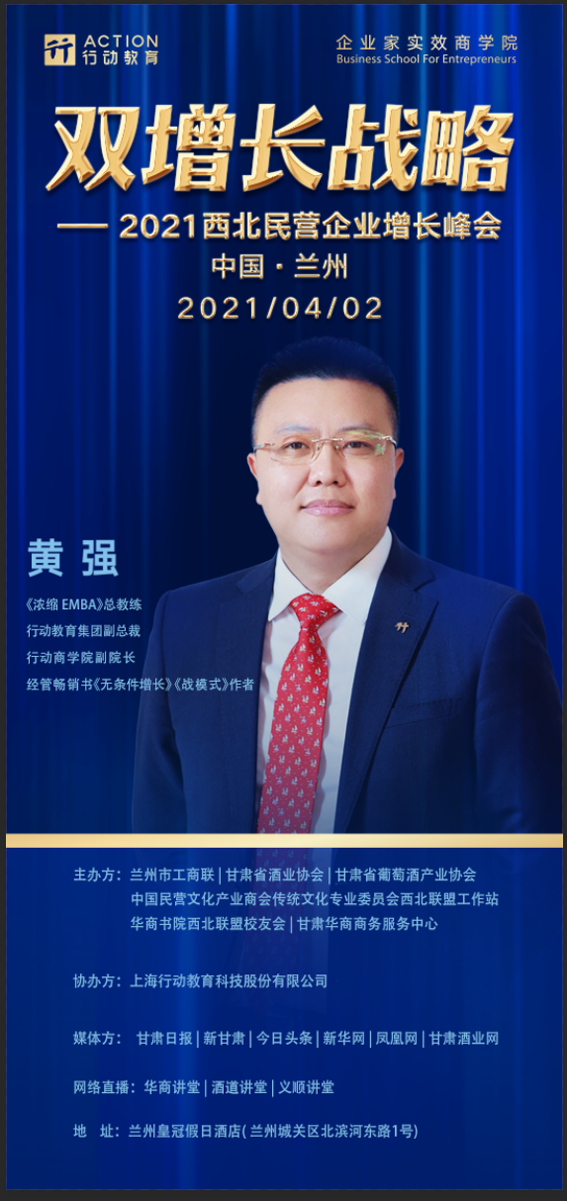 主讲人:黄强(《浓缩EMBA》总教练,行动教育副总裁,行动商学院副院长,经管畅销书《无条件增长》《战模式》作者)