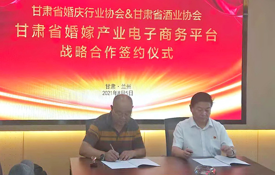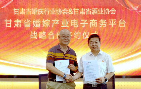 【原创】甘肃酒业网讯:近日,在甘肃省商务厅的大力支持和帮助下,《甘肃婚嫁产业电子商务平台》(三位一体:电脑、手机、微信)完成平台建设。8月5日,在甘肃省酒类流通产业促进中心的积极组织协调下,甘肃省婚庆行业协会、甘肃省酒业协会——甘肃省婚嫁产业电子商务平台战略合作签约仪式在兰举行。甘肃省酒业协会会长张秉庆与甘肃省婚庆行业协会会长郭建平共同签订了战略合作协议。