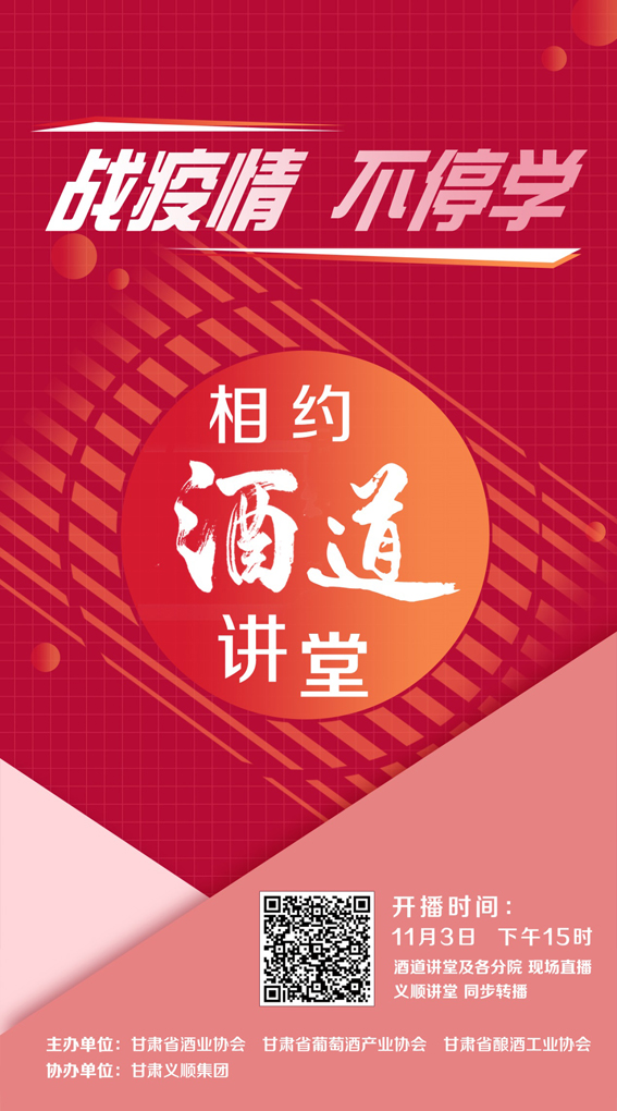 由甘肃省酒业协会、甘肃省葡萄酒产业协会、甘肃省酿酒工业协会主办,甘肃义顺集团协办的《酒道讲堂》:甘肃酒企在行动之“疫情之下的爱心与温度”,11月3日下午,钉钉线上直播间《酒道讲堂》及各分院进行了直播,义顺讲堂同步转播。