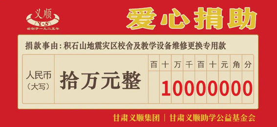 义顺集团始终致力于企业与社会的和谐发展,2018年4月,成立了甘肃义顺助学公益基金会,已连续12年发放义顺金榜题名奖、义顺奖学金、助学金;为37所学校捐建了孔子雕像;为抗击疫情捐赠超36万元。近10年,累计为抗震救灾、扶危济困、捐资助学等公益事业捐款捐物2000余万元。将慈善公益理念融入企业血液之中,让其成为企业文化的重要组成部分,不仅能更好地履行社会责任,开启公益事业“向善之门”,还能树立良好的企业形象,把通过社会公益事业回报社会的正能量转化为企业的深厚资源和核心竞争力,推动企业的可持续发展。