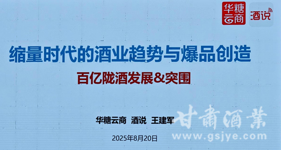 糖烟酒周刊副总编辑、华糖云商(酒说)酒类事业部总经理王建军分享的主题是:《缩量时代的酒业趋势与爆品创造——百亿陇酒发展&突围》。以陇酒三大领军企业――金徽、红川、滨河的发展之路进行分析。