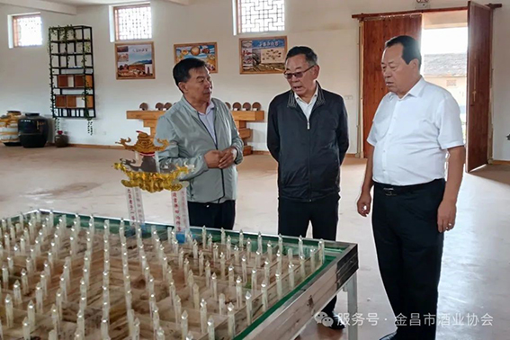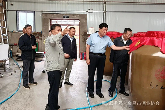 继8月25日金昌市酒业协会第六次会员大会成功召开后,8月26日上午,换届后的甘肃省酒业协会常务副会长兼秘书长李云、副会长王永贤,金昌市酒业协会会长孙尚荣、秘书长张世俊和《甘肃酒业志》暨陇酒文史编委会执行主任兼主编陈浦、副主编李文祥,原金昌市酒类商品管理局局长祁文昌,应邀到位于永昌县红山窑镇的“红山泓”酒厂考察调研,助力赋能。