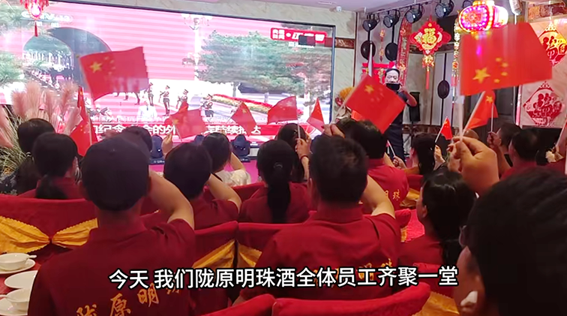 省酒协常务理事单位、甘肃陇原明珠酒业全体员工齐聚一堂,观看大会直播: