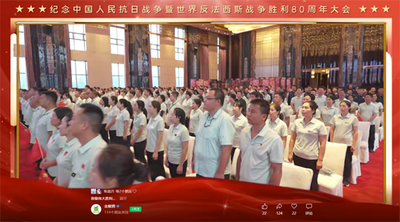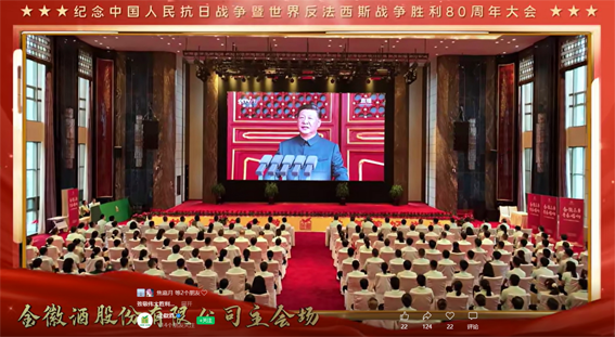省酒协副会长单位、金徽酒股份有限公司党委精心组织全体员工,在公司总部金色大厅及全国各销售公司分会场,同步收看纪念中国人民抗日战争暨世界反法西斯战争胜利80周年大会直播,共同见证国家繁荣昌盛与民族复兴的磅礴气象。
