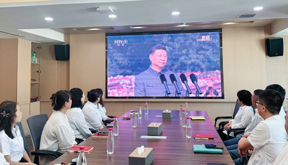 观看中央电视台直播现场,大家全神贯注沉浸式感受阅兵带来的视觉盛宴,同时认真聆听学习了习近平总书记在纪念大会上的重要讲话。讲话中深情回顾光辉历程,深刻阐释伟大抗战精神的核心要义,讲话以及阅兵中蕴含的人间正气与中国力量深深震撼,从烽火连天的抗战岁月,到科技引领的强军新征程,80载砥砺前行,中国军队与祖国共同铸就了今日的荣光篇章。