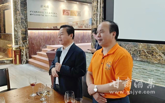 张秉庆会长详实介绍了甘肃陇酒发展及知名品牌企业产品,重点介绍了莫高葡萄酒产品情况。他期望湖南酒商大咖们多关注了解、品鉴推广甘肃陇酒,留下宝贵意见和合作意向,助力甘肃陇酒产业发展。