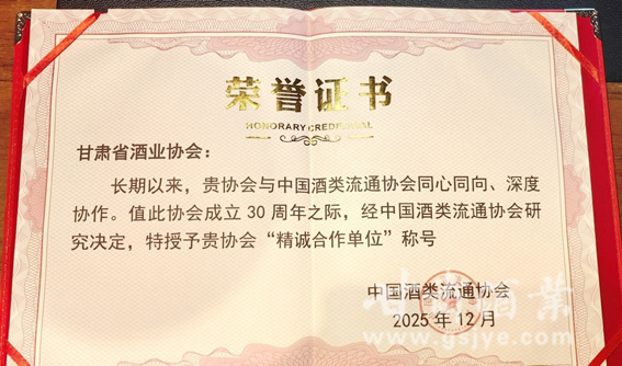 甘肃省酒业协会,多年来秉持实心,以实际行动助推酒业高质量发展,与中国酒类流通协会同心同向,深度协作,为此,此次会议上,甘肃省酒业协会荣获中国酒类流通协会授予的“精诚合作单位”荣誉称号。
