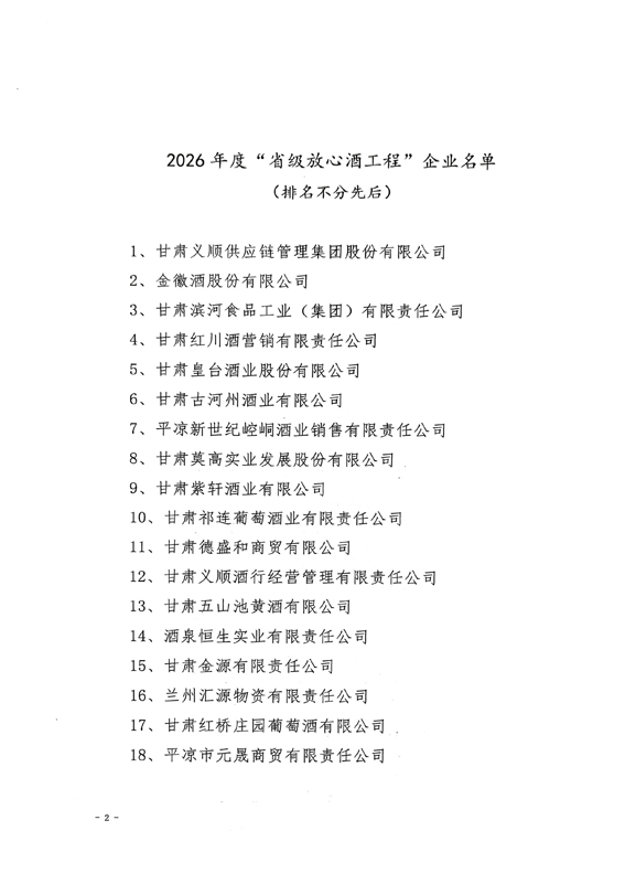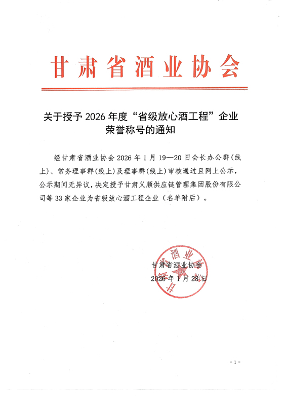 甘肃省33家企业荣获“省级放心酒工程”企业称号