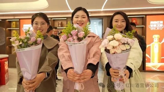 在红川酒业,不仅有春日暖阳,更有表达敬意与关爱的美酒,象征美丽与祝福的鲜花。一句句“节日快乐”的暖心祝福,一声声“辛苦了”的真挚感谢,让坚守在生产、销售、管理等不同岗位上的女性职工们倍感温暖。