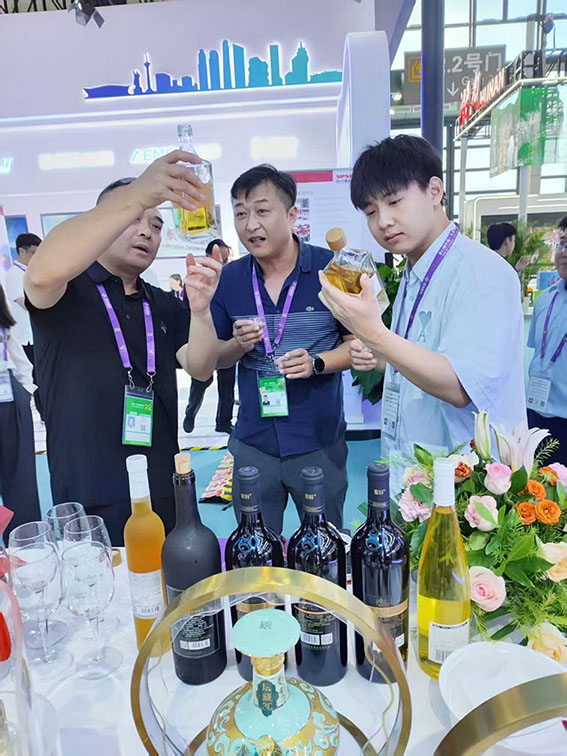 省酒类流通产业促进中心组织莫高、紫轩、国风庄园、寿鹿山4家葡萄酒企业,以及滨河、皇台、大地湾、省轻工院4家白酒企业,共8家代表性陇酒企业抱团参展。借助陇酒深厚的文化底蕴与卓越品质,展区吸引了大量海内外客商品鉴交流,成为“甘肃馆”人气亮点。