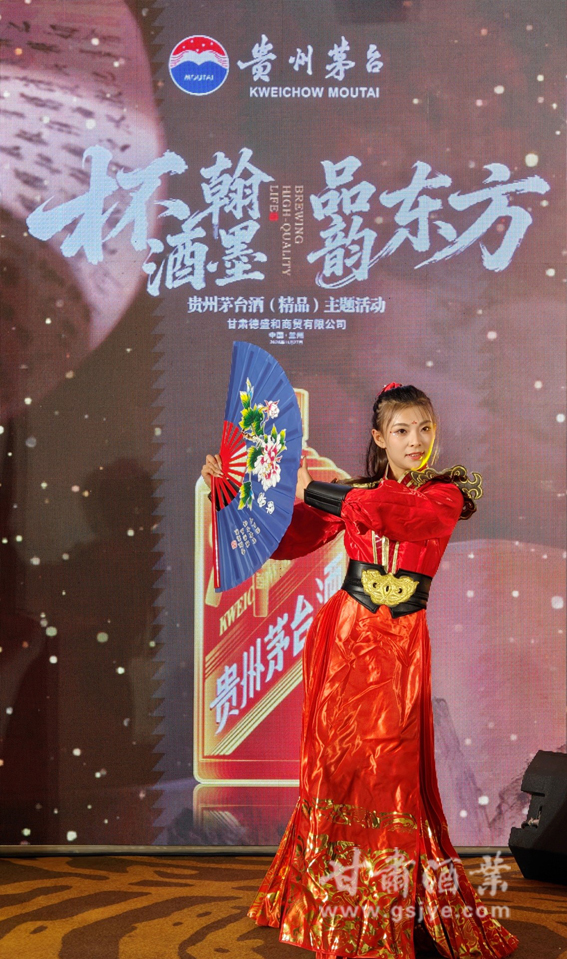 开场舞《舞墨乾坤》以舞姿模拟书法运笔,将酒文化与书道意象巧妙融合,拉开活动序幕。主办方播放了“精品茅台”主题宣传片,并由甘肃德盛和商贸有限公司董事长魏兴琦、贵州茅台酒销售有限公司甘肃省区总经理周传雄等嘉宾分别致辞,阐释茅台品牌的文化价值与时代使命。