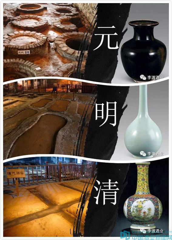 从李渡元代圆形砖砌地缸发酵窖池、到明代腰形窖池、再到清代底部涂泥的砖砌长方形酒窖池的演变,是认识中国蒸馏酒酿制工艺发展历史的重要资料。