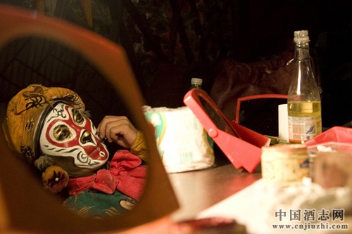 戏曲舞台上描写醉鬼或有酣酒恶习的的人,在化妆的相貌上,常在其原有脸谱底色(如黑色、灰色等)上再用红色略涂双颊;有的则在鼻头上抹红色,象征“酒糟鼻子”。