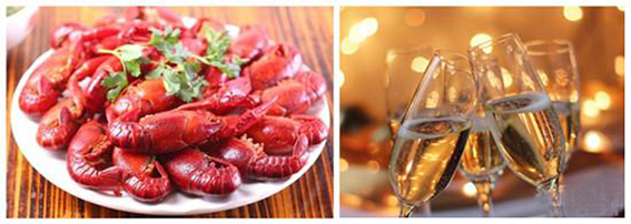 3. 清蒸小龙虾搭配起泡酒或霞多丽(Chardonnay)白葡萄酒