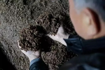 “酿酒人对糊化完冷却后的醅料进行检查,既不能压的紧,也不能过松。”