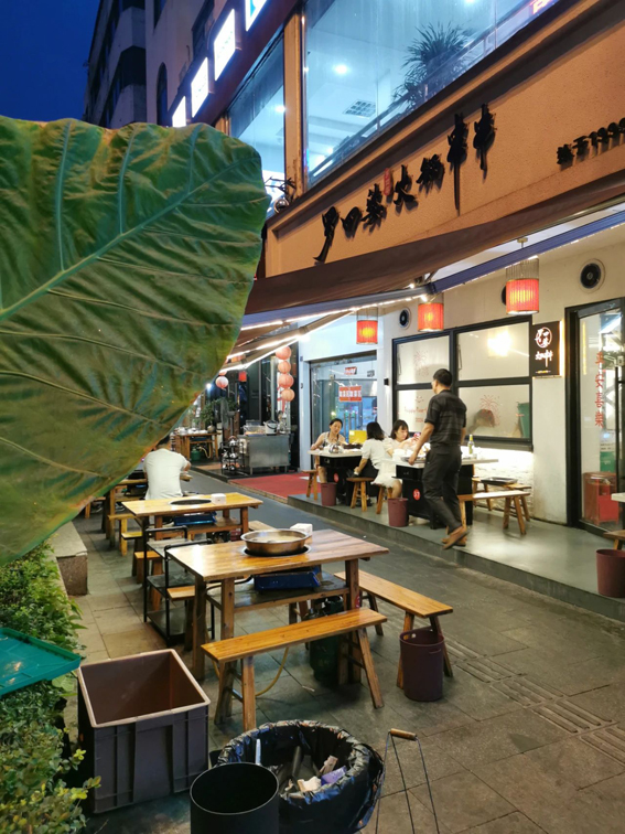 罗四婆串串店在街边路上摆着几张桌子,这次来见到桌子比以前的桌子要进步,看着高级一点。这家店的地摊串超级好吃,我每次来都要吃一回