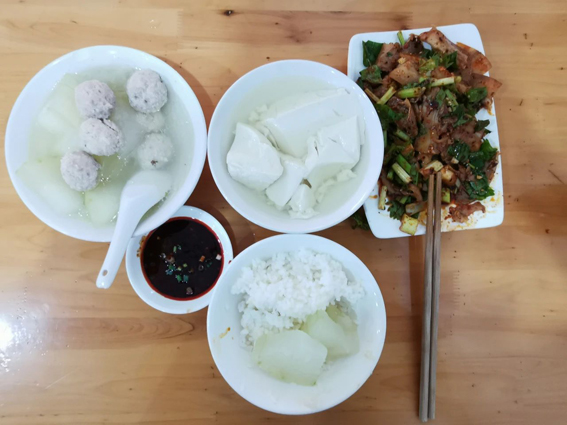 豆花饭、米冬瓜丸子汤加凉拌猪头肉,我感觉这是“神仙”才能吃到的美食,但在这里却是当地老百姓日常生活的家常便饭